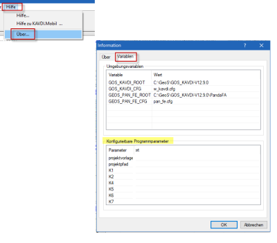 Die vollständige Liste der in den Parametern verwendbaren Variablen ($…) finden Sie in der GEObüro-Hilfe im Kapitel GEObüro-Einstellungen unter Techn. Programme.
