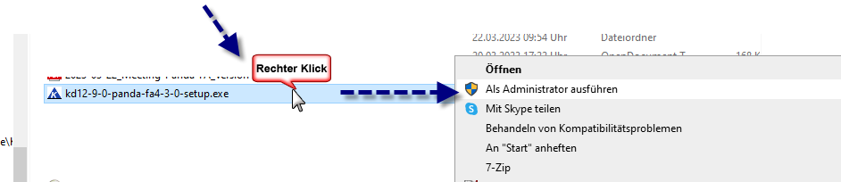 Starten Sie die Setup.exe mit der rechten Maustaste