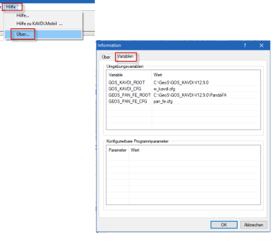 Merken Sie sich an dieser Stelle den unter der Variablen GOS_KAVDI_ROOT und (optional) GEOS_PAN_FE_ROOT eingetragenen Wert. Der Name des Ordners kann von dem Standardverzeichnis abweichen. Der hier aktuell eingetragene Ordner ist der Ort ihrer KAVDI - Installation.
